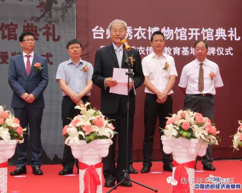 “台州绣衣博物馆”开馆暨“台州绣衣传承教育基地”授牌仪式,今日在浙江台州芸芝绣衣有限公司举行。原中国纺织工业联合会会长、中国纺织工业联合会顾问杜钰洲,原中国纺织规划院院长於荣赓,中国纺织企业家联合会秘书长谢方明,台州市政府副市长赵跃进,台州市人大副主任王金生等领导出席。